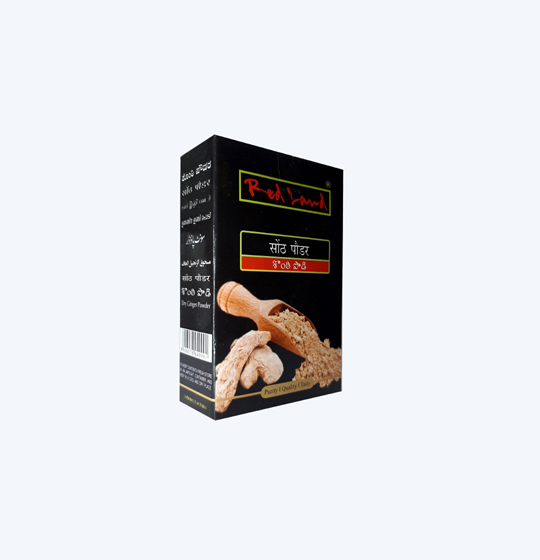 The powder is extracted from the ginger root which is dried. It is a fine off-white or slightly brownish powder that has a strong aroma and a pungent flavour.